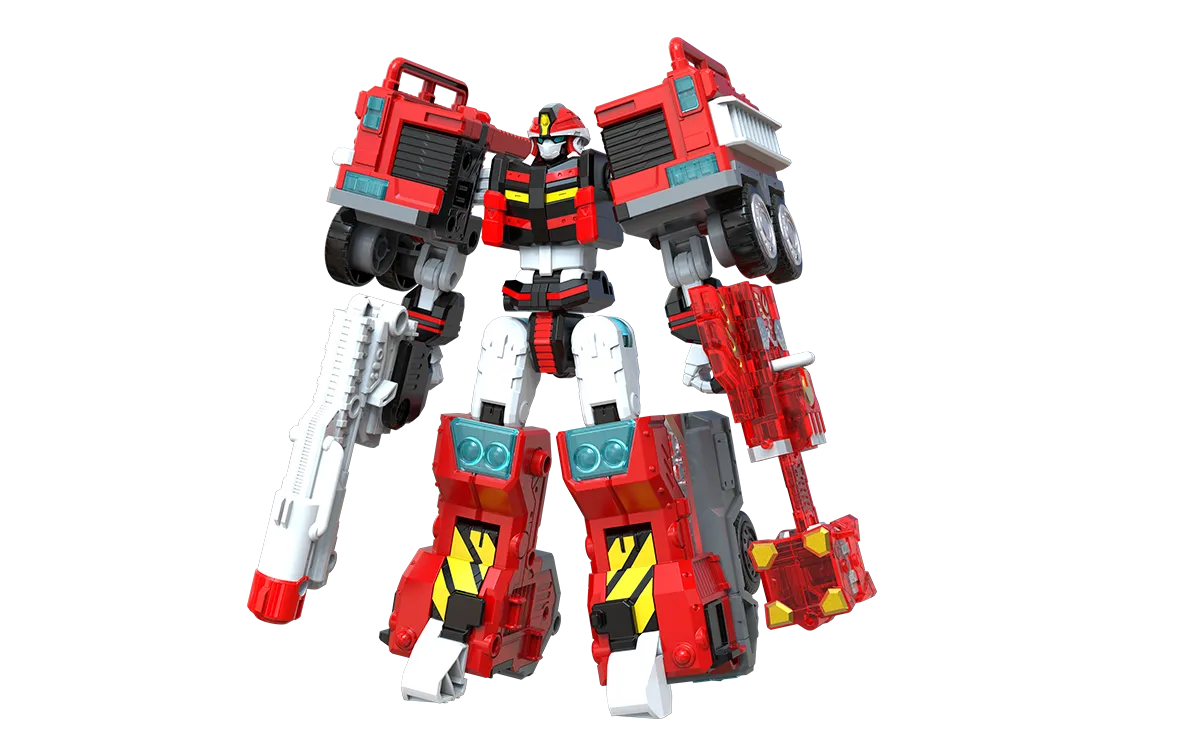 Phoenix Fire is a Metal Cardbot introduced in S1E1, Mystery of the Police Car Robot! that transforms into a fire truck. He worked with Mega Ambler on planet Machina to put out fires, earning the Metal Medal for his bravery;1 however, a crash landing on Earth caused him to become afraid of fire until Jun sealed him with the Metal Breath.